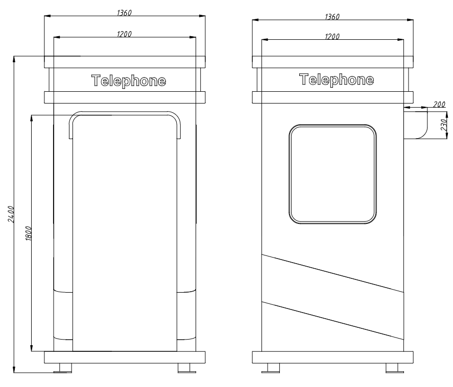 Dimensions 1360 x 1360 x 2400mm (L × W × H)